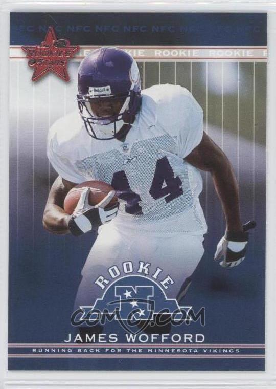 James Wofford has 3 cards to his name, all versions of his 2002 Leaf Rookies and Stars base. Here's a copy from COMC.com