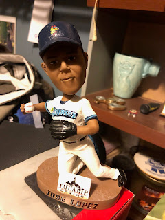 Cool because it's 13/20. Super rare!Going off cards, I was a HUGE Backyard Baseball fan as a kid. A minor league baseball team did a Backyard Baseball night, and I mentioned it to my family because we all loved it and I thought it was cool. My Dad went one step beyond and got us all the bobblehead for the night - the always epic Pablo Sanchez. This thing is so cool.
